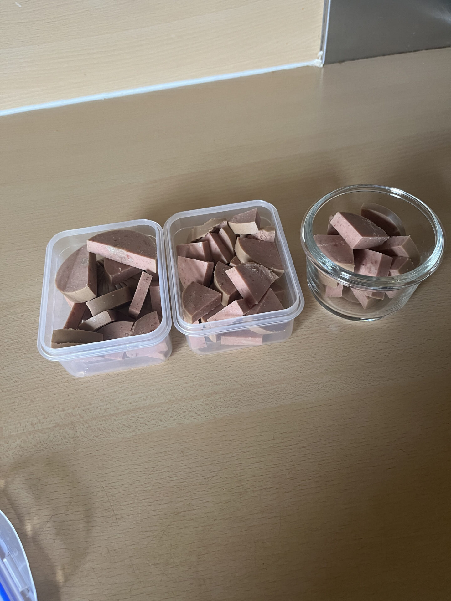 Tip: vries de voorgesneden stukjes in zodat je niets weg hoeft te gooien, zie foto 2. Dag van tevoren uithalen en gaan met die worst!