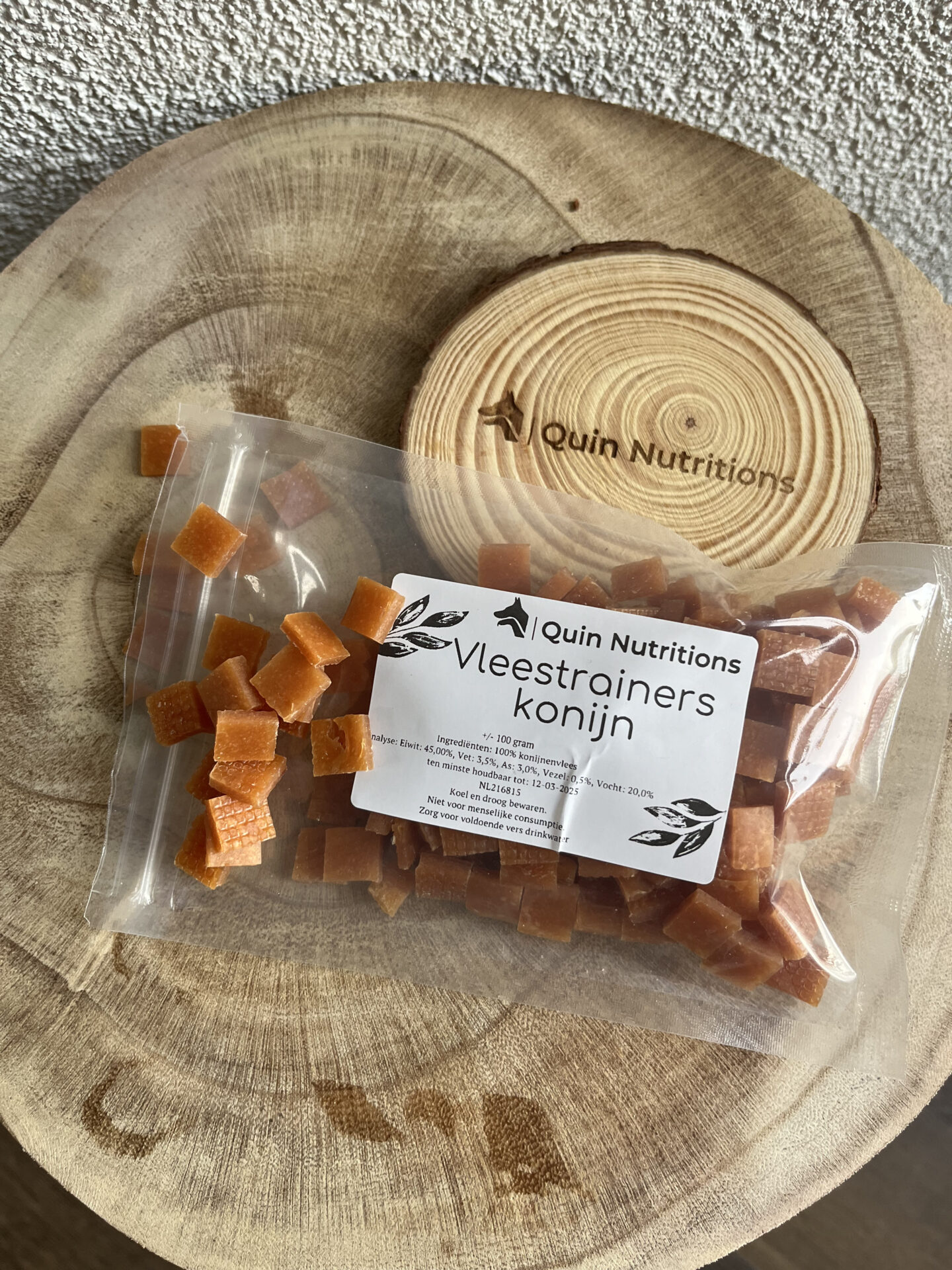 De vleestrainers konijn zijn een vetarme snack en hebben een hoge acceptatie.