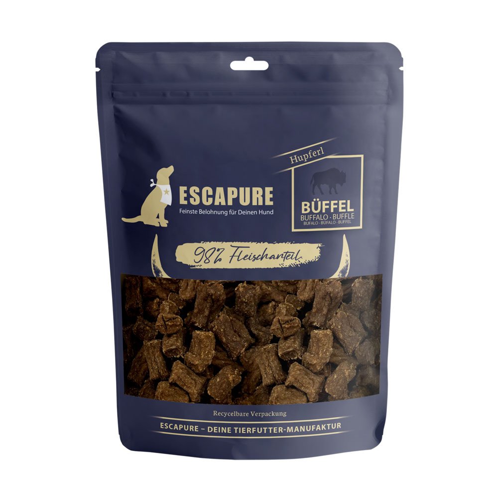 Deze Escapure Hupferl snacks worden gedroogd en zijn een ideale traktatie tijdens de hondentraining of als beloning voor tussendoor. Door de enkelvoudige eiwitbron ook bijzonder geschikt voor honden met intoleranties of allergieën.De Escapure snacks zijn vrij van kunstmatige toevoegingen als geur-, kleur-, smaakstoffen en conserveermiddelen.