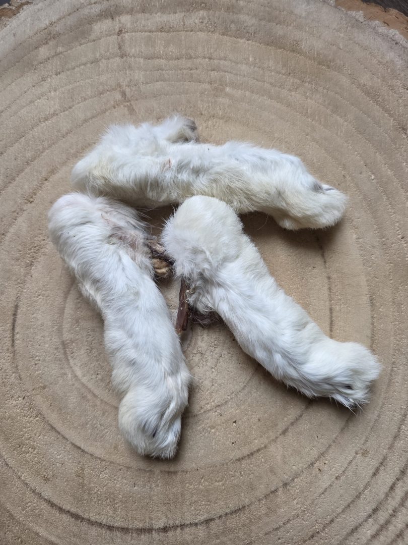 de konijnenpootjes zijn een kleine snack die geschikt is voor zowel grote als kleine honden. De pootjes zijn iets harder en stugger dan de konijnenoren en valt onder een gemiddeld harde snack.